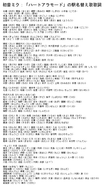 初音ミク ハートアラモード の駅名替え歌歌詞 栃木那須 初代