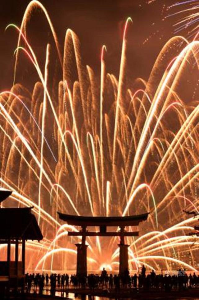 日本宫岛水上烟花大会花火笼罩着整个天空 腾讯网