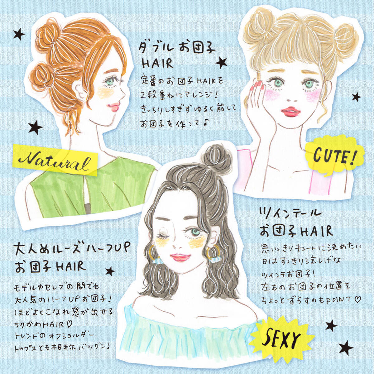 ルーズさが今っぽい お団子ヘアアレンジ イラスト付き 2016年4月