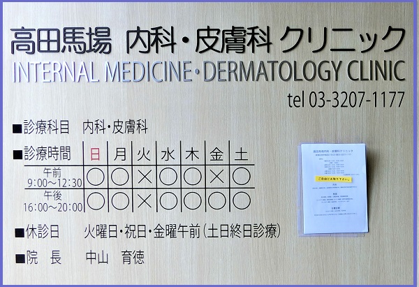 高田馬場内科 皮膚科クリニック 西早稲田駅4分 土曜日 日曜日