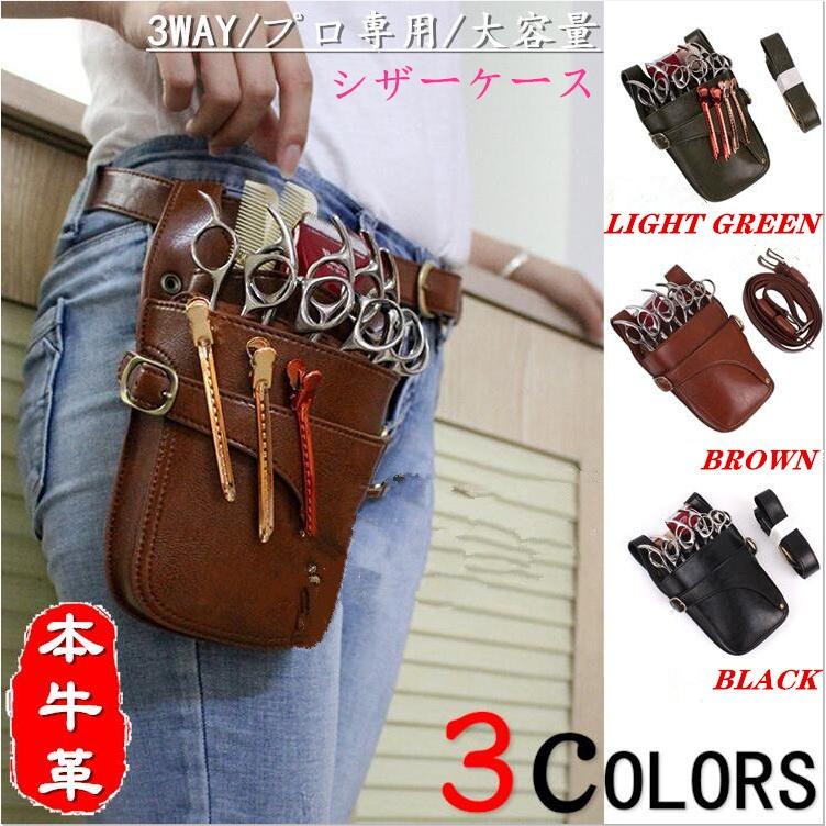 シザーケース 美容師 トリマー カット用品 3way 本革 牛革 トリマー