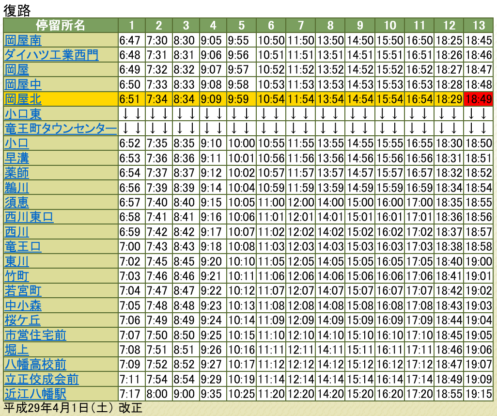 Jr近江八幡駅 三井アウトレットパーク 滋賀竜王 バス時刻表 滋賀