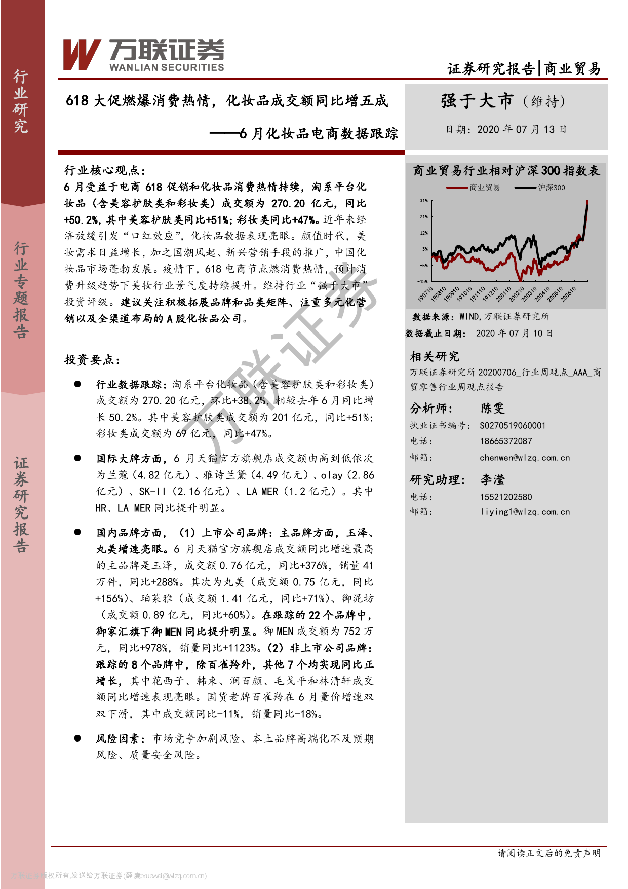 万联证券 2016年6月化妆品电商数据跟踪 化妆品电商 新浪科技 新浪网