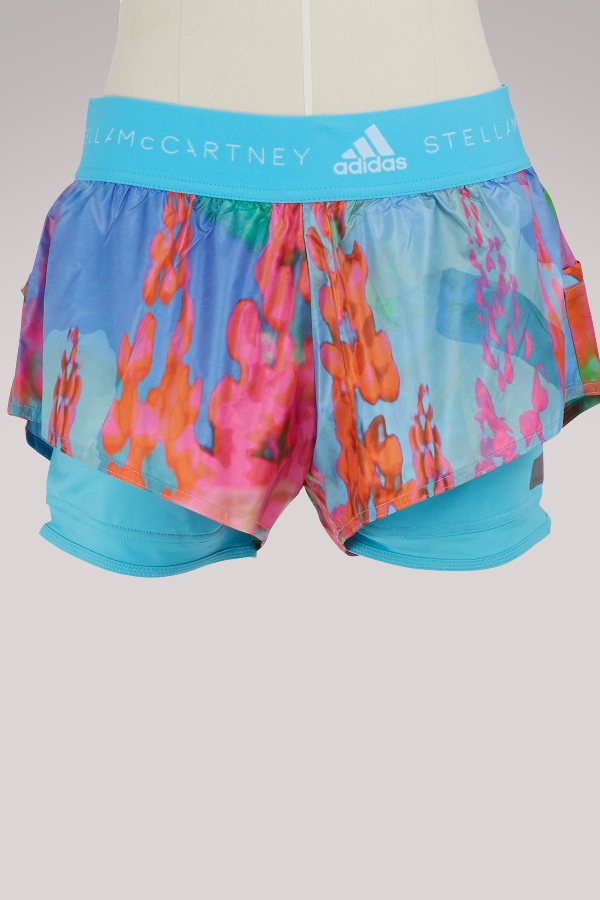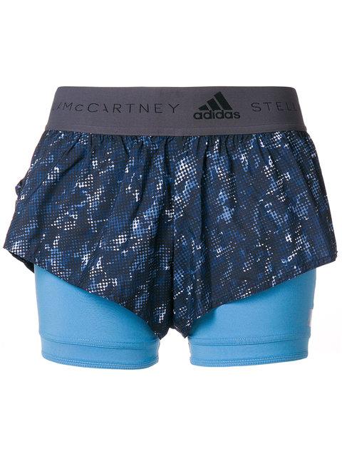 Adidas By Stella Mccartney Printed 2 In 1 Running Shorts In Blue
