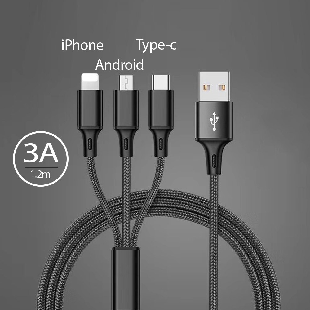 3 In 1 Cable Iphone Lightning Usb Android Micro Usb Type C Sync