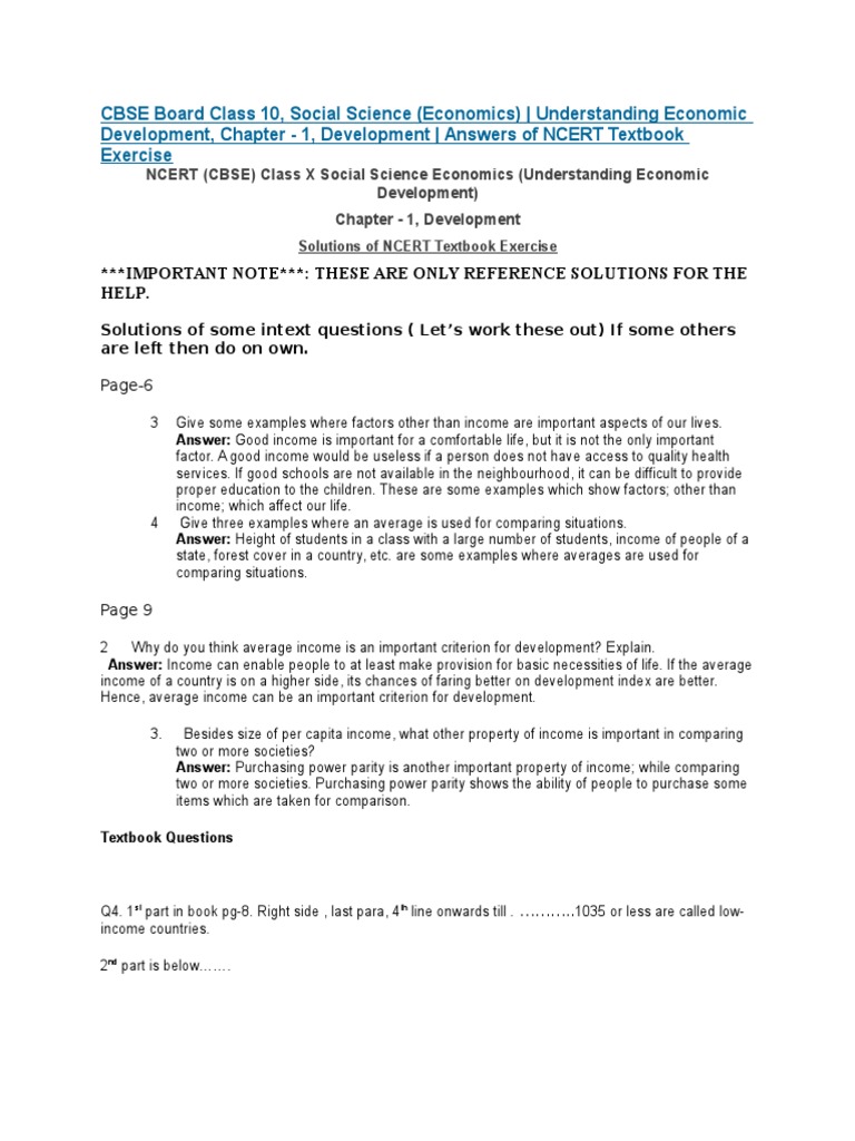 Ncert Solutions For Class 10 Economics Chapter 1 Development