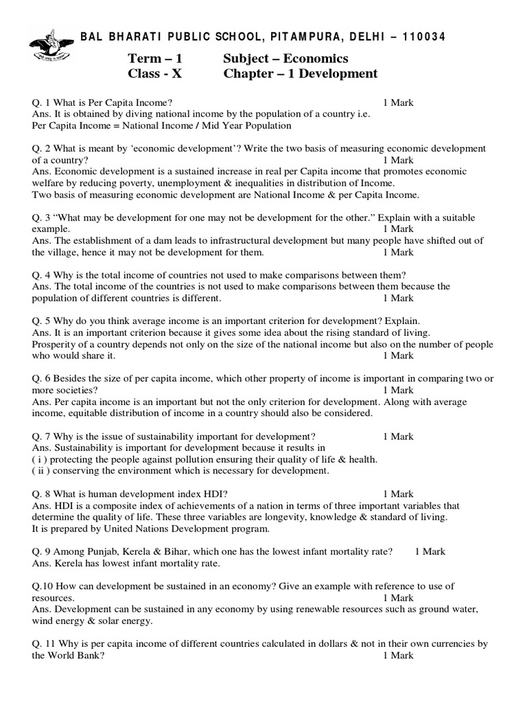 Development Eco Term1 Class10 Human Development Humanity